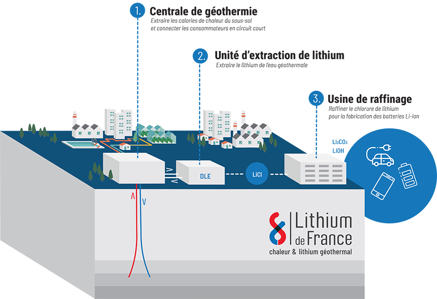 « Créée en 2020, la vocation de Lithium de France, membre d’Arverne, entreprise à mission, est d’accélérer la transition énergétique par la fourniture de chaleur et de lithium géothermal. »
